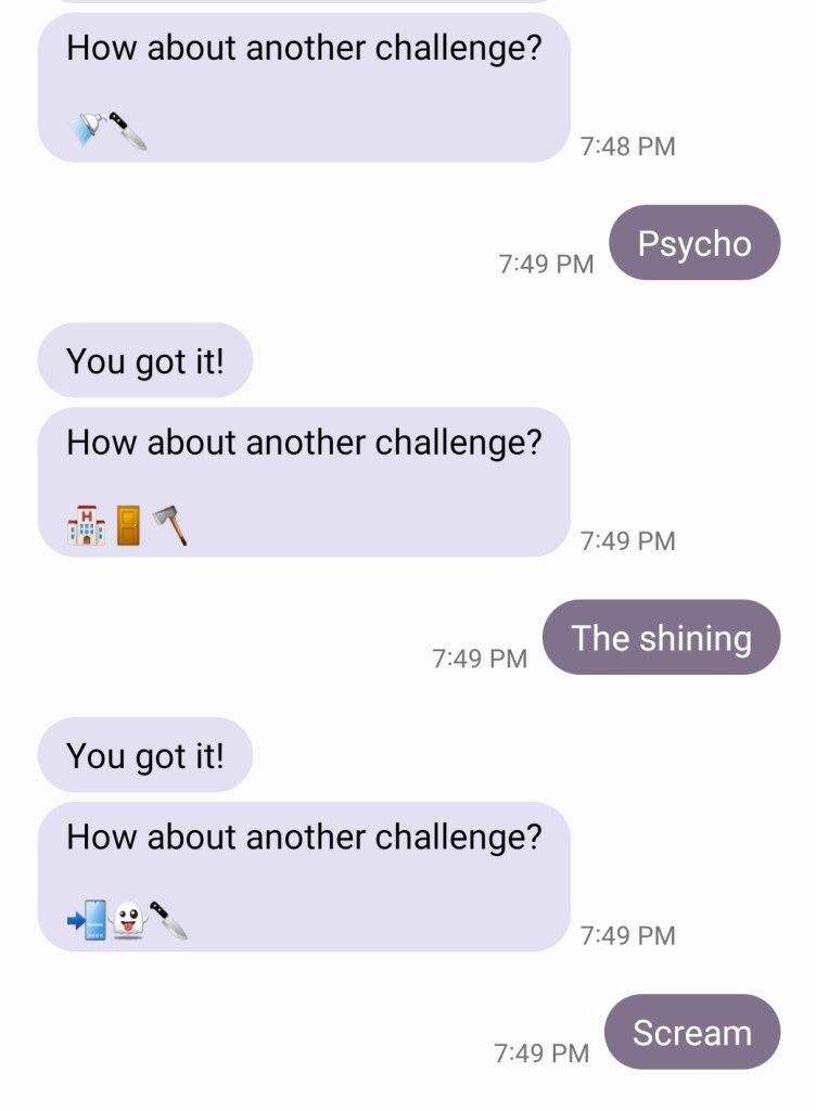 Then, we developed a text-based scary movie emoji quiz. Once users signed up to receive text messages from Twilio, they received a series of emoji and had to guess the horror movie title these represented.
